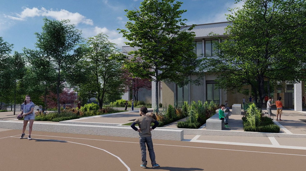 4 represéntations réalistes des programmes paysagers des cours Oasis selon leur différentes strates :
